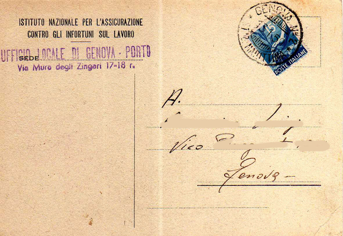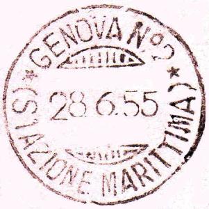 Annullato con il bollo GENOVA N° 2 (STAZIONE MARITTIMA) in data 28.6.55.