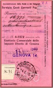 Annullato con il bollo GENOVA n°14 (PIAZZA CORRIDONI) in data 14 giugno 1940.