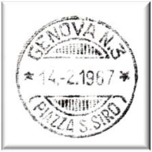 Descrizione del timbro: cerchio semplice, al centro la data con giorno, mese,anno e l'ora, il nome della piazza è inserito tra due parentesi, all'interno due lunette con dodici barrette.